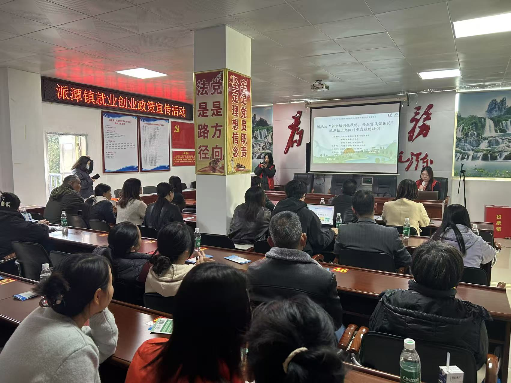 增城区人力资源和社会保障局联合派潭镇,以上九陂村为创业典型村创建试点,创新构建“政府引导、多方协同”模式,深度融合就业驿站及高质量就业社区村构建工作,同时引入第三方专业服务团队(广州聚信管理咨询服务有限公司)开展驻点服务。通过组建“专职服务人员+创业指导专员+运营支持人员”专业服务团队,驻村提供从规划设计到运营管理的全流程指导,让创业补贴、技能培训、商企推广扶持等政策红利直达创业者。