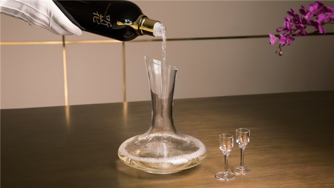 “比着喝”的对比品鉴策略。听花酒具从“五触品鉴酒具”到“听花堆雪醒酒壶”均可用于对比品鉴。在以“听花堆雪壶”与十年酱香老酒比着喝时,听花酒因酒体缔合紧密,酒花更细腻、酒花堆叠更厚更持久,且爆裂声绵密有力,品饮时酒体更为丰富浓郁、醇厚饱满,“老酒再酿造”专利工艺的优势立现。